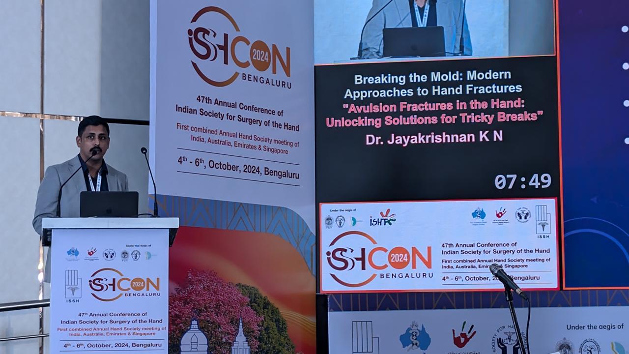 As a Member/Faculty of international surgical societies including the Indian Society for Surgery of the Hand (ISSH), British Society for Surgery of the Hand (BSSH), Asia-Pacific Hand Surgery Society (APFSSH), and Emirates Hand Surgery Society (EHSS), Dr. Jayakrishnan continues to advance excellence in hand and upper-limb care through innovation, research, and teaching.